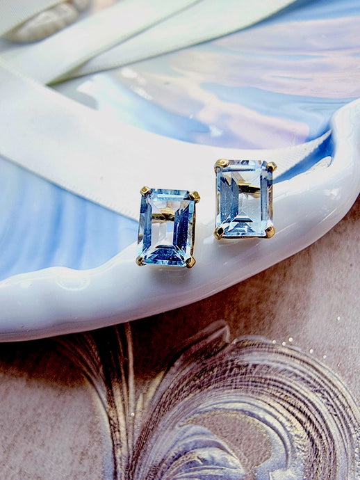 10 karat guld ørehængere blomster med blå topaser & diamant