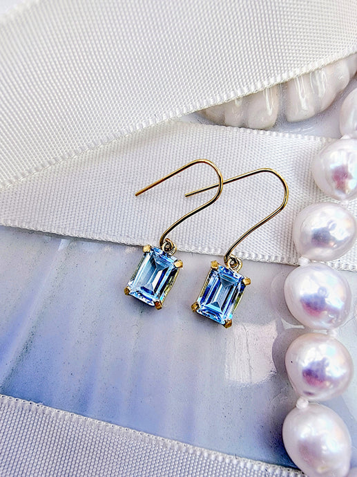 10 karat guld ørehængere firkantede blå topaser