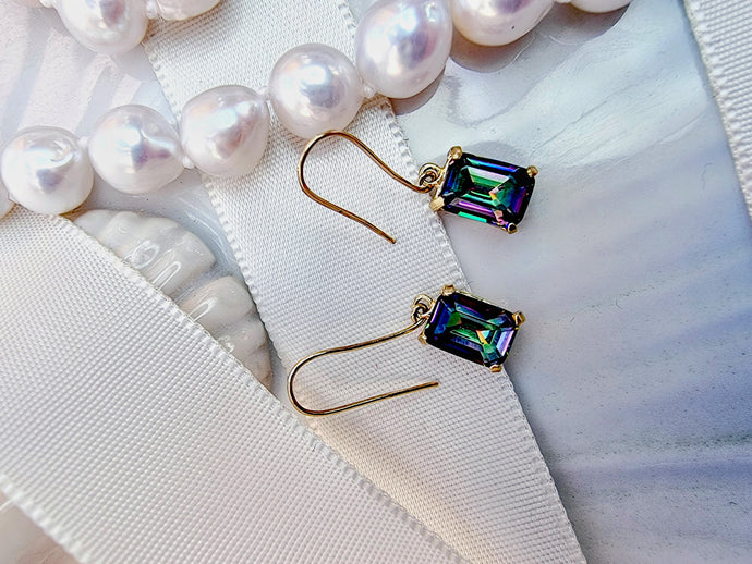 10 karat guld ørehængere firkantede mystisk topas