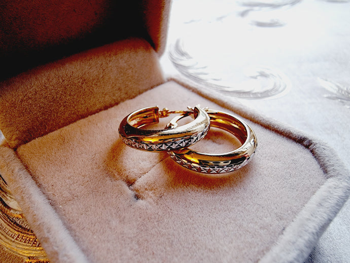 31% 18karat guld Smukke creoler med mønster BREDE